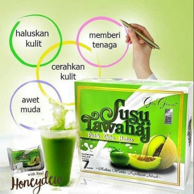 Susu Tawahaj dari Glow Glowing HQKELEBIHAN SUSU TAWAHAJ✅melembapkan kulit dan membantu individu bertenaga sepanjaang hari✅membantu sistem pembuangan dengan mencegah sembelit✅membantu memutih, mecerahkan dan menghaliskan kulit (awet muda)✅mengurangkan kolestrol dalam darah✅menguatkan tulang dan gigi✅dapt membantu mencegah tekanan darah tinggi✅sesuai untuk ibu hamil✅sangat baik untuk gastrik-mengandungi vitamin C untuk mencantikan