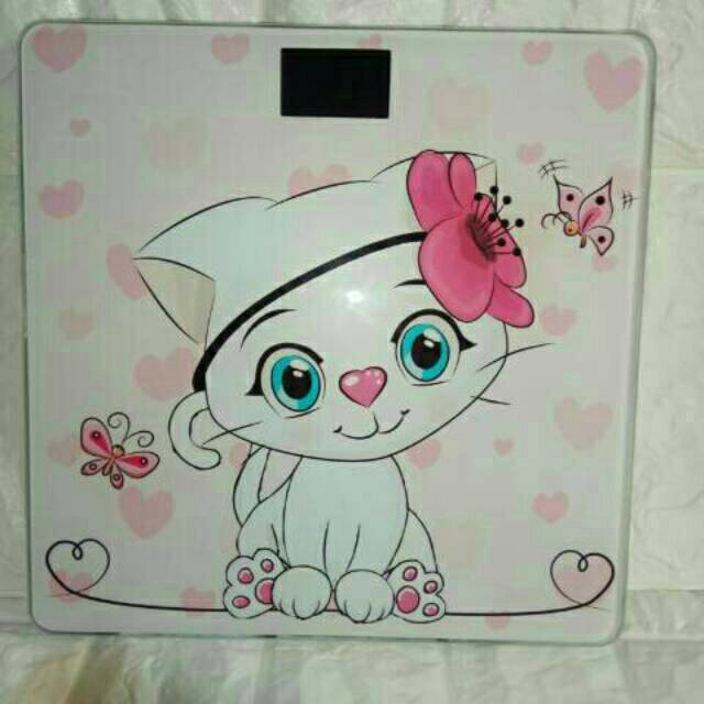 Ada 2 model besar dan lebih kecil.Hellokitty dan beruang ukuran 25x21cm(model baru masuk).Gajah,kucing,beruang,paus ukuran lebih besar 28 cm*28cmBerat Packing 2 kg.Gratis baterai 2.Tinggal dipakai, berdiri diatas timbangan angka akan mu