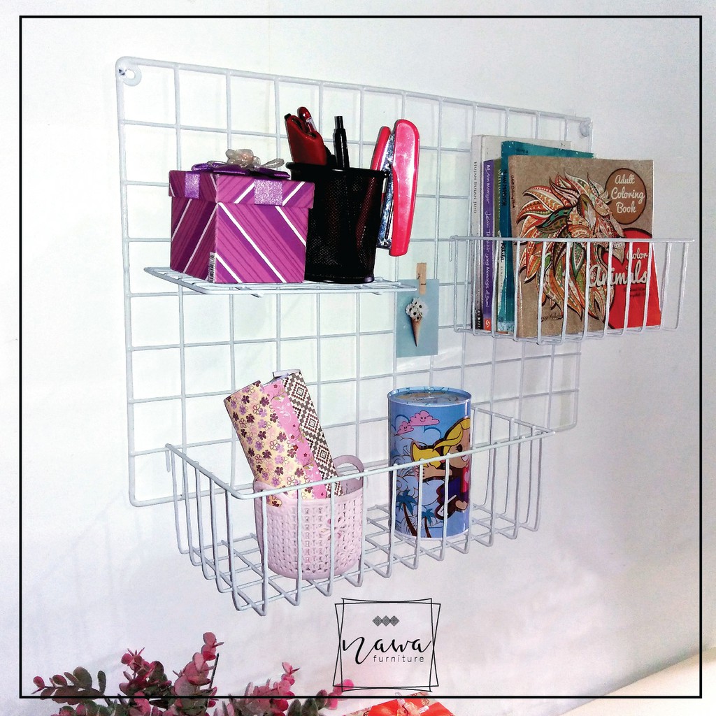 Diskon Perlengkapan di Jakarta Selatan Taeyang-white Wall Grid Keranjang Gantung Hiasan Dinding Wire Mesh 60x40 Putih dari Tidak Ada Merek Kota Surabaya