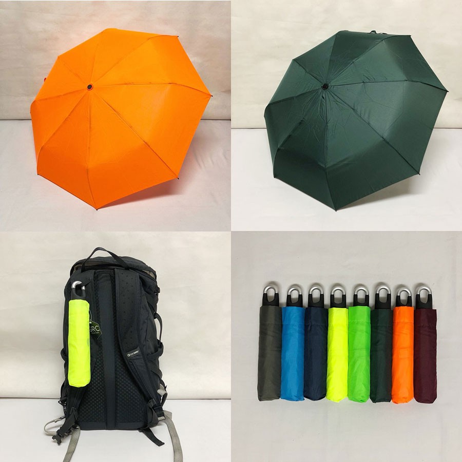 Payung lipat 3 - travelling polos - 72003.Gagang payung berbentuk kaitan yang dapat diputar dan dikaitkan pada tas sehingga cocok untuk dibawa untuk travelling. Kaitan tidak mudah lepas karena ada mekanisme pengunci yang membuat kaitan tidak mudah berputar dari posisi terkunci.Tersedia dalam 8 pilihan warna menarik seperti digambar (dari kiri ke kanan): abu, biru, navy, kuning, hijau terang, hijau tua, orange, maroon. * Detail ukuranPanjang payung (dilipat) 25cmDiameter payung
