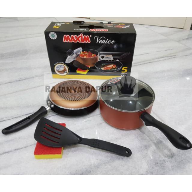 Termurah Perlengkapan di Kabupaten Nganjuk Panci Maxim Venice Set Peralatan Masak Frypan Spatula Sponge / Panci Set Maxim / Panci Maxim dari Maxim Kota Surabaya