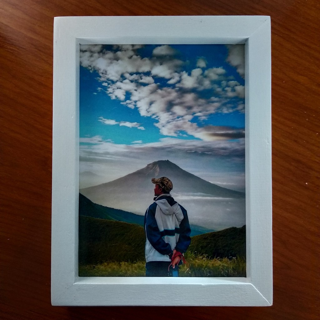 .Daripada cuman disimpen di handphone atau di upload ke sosmed, coba di cetak buat di jadiin pajangan..- Ukuran 5R (12x18cm)- Kertas foto sillky doff + laminasi- Frame kayu warna hitam/ putih (tanpa kaca).Kenapa gak pake kaca?+ Soalnya kertas yg di pakai jenisnya doff, foto akan tetap terlihat jelas walaupun tersorot sinar. Kalau pakai kaca sama aja boong, karna kaca menimbulkan bayangan+ Biarpun gak pake kaca, warna foto akan tetap awet Karena sudah di beri lapisan laminasi.#cetakfotomurah #cetakfoto #printfoto #printfotomurah #kadounik #kadou