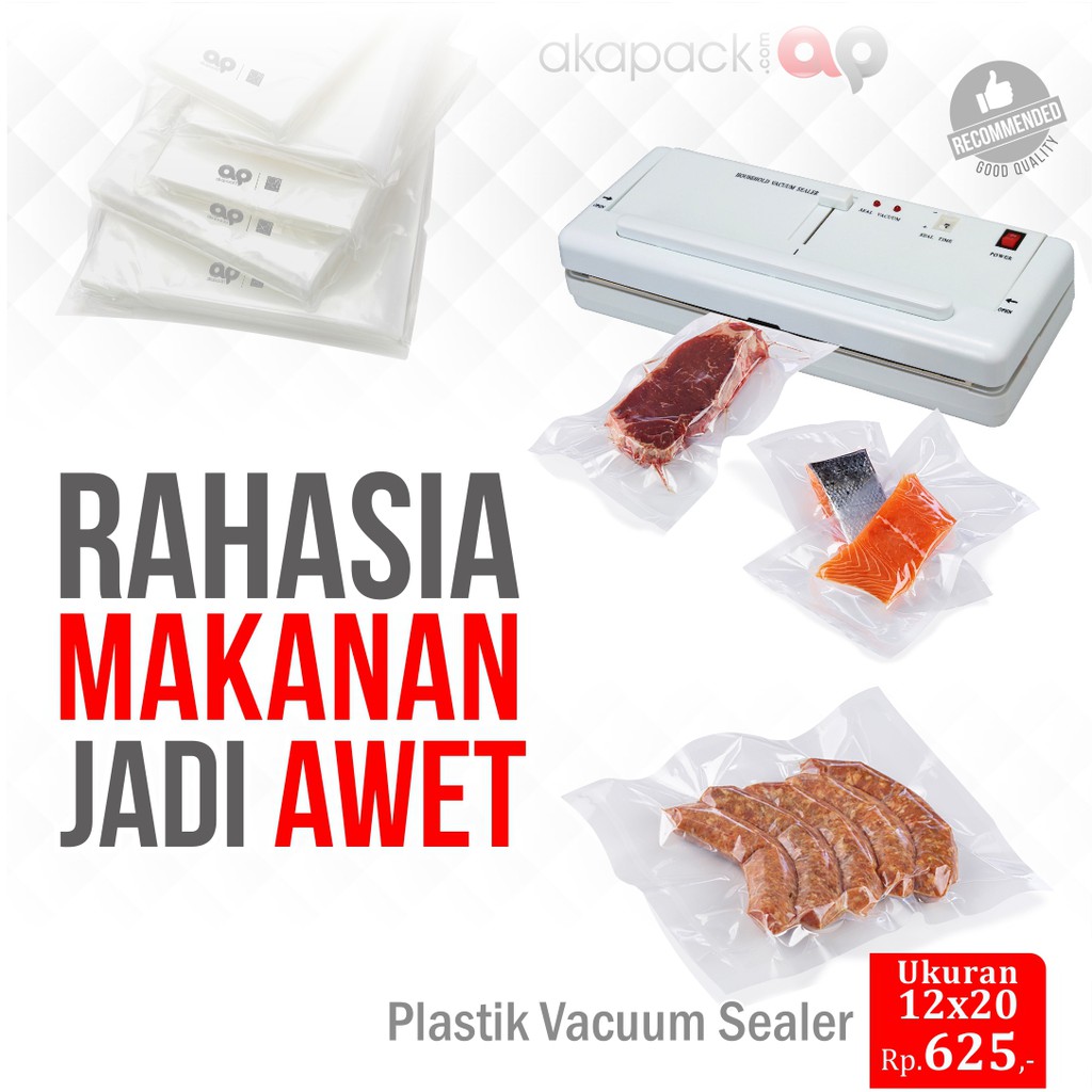 PLASTIK VACUUM POLOSBUKAN EMBOSSPLASTIK VACUM/ VACUUM / VAKUM BAG Bahan dari Pe dan Nylon Tebal +-75 - 80 Micron, Tekstur Halus, *Ukuran P x L = 12x20 cm, * Bukaan plastik di posisi P 20cmKemasan ini memiliki ketebalan yang sesuai dan terbuat dari bahan Pe & Nylon yang memiliki pori yang lebih rapat dan barrier terbaik untuk kemasan vacuum makanan. Sehingga kemasan tidak mudah masuk dan keluar angin/udara, dengan memakai kemasan ini tujuannya untuk menambah masa umur simpan makanan.Produk kami sudah teruji dan banyak dipakai untuk aneka produk; Bakso, sosis, Rendang, ayam ungkep, olahan daging dan ikan, batagor, siomay basah, Cilok, pasta, minyak goreng, pure juice, sause, sambel, beras, selai, makanan beku, dll.Tersedia dalam beberapa ukuran, kemasan ini berbentuk Kantong/bag dan memiliki seal di kanan, kiri dan bawah kemasannya (tebal seal 6-10mm tergantung besarnya ukuran kantong)PENTING: harga diatas adalah harga per pcs, namun dengan pertimbangan ongkos kirim agar lebih hemat, plastik vacuum ini djual minimum 100pcs, dan pembelian kelipatan 100pcs*mohon diisikan pembelian 100pcs (minimum) dan kelipatan 100pcs*kurang dari 100 maaf tidak kami proses... terimakasih... selamat berbelanja... #plastikvacuum #plastikvakum #kemasanplastik #kemasanvacuum #kemasanvakum #kemasankedapudara #kemasandaging #plastiksosis #plastikvacummurah #kemasancilok #plastikawet #vakumsealer #vacuumse