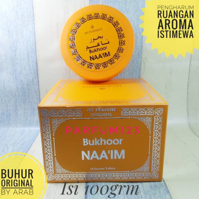 Buhur/Dupa Buhur Oud Naaim original Produsen: Dubai Arab saudi KSAVolume: 100 grmProduksi:01/06/ 2016Expired: 3 thn dari produksi.Wewangian dupa arab di bakar di atas arang.Bin qadim Oud Naaim beraroma gaharu..buhur ini paduan antara kayu gaharu dan wewangian timur tengah cocok digunakan dalam acara2 keagamaan,majlis taklim,pernikahan hajatan khitan dll. Taburkan sedikit buhur ke dalam arang menyala dalam mabkharah maka ruangan anda akan seperti berada di timur ten