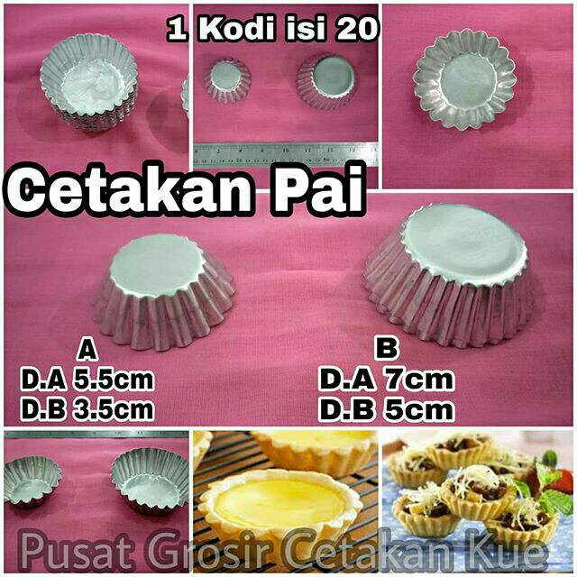 Cetakan Kue Untuk Pai/Cup Cake bahan alumuniumaman masuk panggangan ukuran A : diameter 7cm x tinggi 3cmukuran B : diameter 6.5cm x tinggi 2,5cm ukuran C : diameter 6cm x tinggi 2cmukuran D : diameter 5.5cm x tinggi 2cm ukuran E : diameter 5cm x tinggi 2cmukuran F : diameter 4.5cn x tinggi 1.5cmHarga yang tertera adalah Untuk 20 picshappy shoping#cetakankue #kue #cetaka