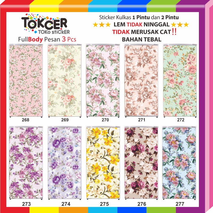 - LEM tidak NINGGAL saat stiker dilepas kembali walau sampai berTAHUN2, jadi TIDAK merusak Cat, TIDAK perlu keluar biaya lagi dan susah2 bersihin bekas lem - Bahan stiker TEBAL jadi menutup sempurna body kulkas, bukan yg tipis murahan masih tembus/terawang- Hasil cetakan WARNA TEBAL High Resolusi - Gambar ASLI…Tidak Pecah Blur…BUKAN Copas dari Google…Gambar jelas dan Detail- Ukuran standard Kulkas 1 pintu 60 cm x 120 cm- Ukuran standard Kulkas 2 pintu 60cm x 150cm- Kulkas bila ingin Fullbody pesan 3 pcs- Apabila ingin ukuran lainnya silahkan Chat kami- Bahan Sticker Vynil Gloss Import Premium Class.- Anti air dan Tahan panas, Tahan lama, Lem Kuat - Hasil Cetakan High Quality menggunakan Mesin jepang Roland dan Mimaki.- Finishing Laminating Gloss, melindungi kulkas dari goresan, tumpahan.- Packing dibungkus dgn Aman jadi tidak perlu khawatir rusak di ekspedisi. Cara pemasangan stiker kulkas :1. Bersihkan bidang kulkas yang ingin di tempel dari segala kotoran dan debu2. Lepas bagian belakang stiker sebagian semprot dgn air sabun(air+shampoo) lalu semprot juga body kulkas yang akan di pasang stiker3. Dalam keadaaan basah tempel sticker ke body kulkas atur sampai posisi yang diinginkan, sticker yang lebih nanti setelah kering dapat di potong dengan cutter4. Tekan dan gosok stiker perlahan mendorong sampai air sabun keluar semua 5. Jika semua air sabun sudah keluar anda dapat keringkan dengan hair dryer atau biarkan saja sampai sticker mengering6. Setelah mengering anda dpt merapihkan bagian lebih dari sticker dgn memotong menggunakan cutterSelamat memilih dan berbelanjaSalam TOKCER TOKo stiCkER berkualitas #stikerkulkas #stikerkulkascustom #variasistikerkulkas #jualstiker #tokcertokosticker #stikerkulkaskartun #stikerkulkasunik #stikerkulkas2pintu #stikerkulkas1pintu #stikerkulkasmotif #stickerkulkasbunga #stikerkulkasshabychic #stikerkulkashijau #stikerkulkasmotif #stikershabbychic #stikerkulkasshabby #stikerkulkasmurah #stikershabby #s